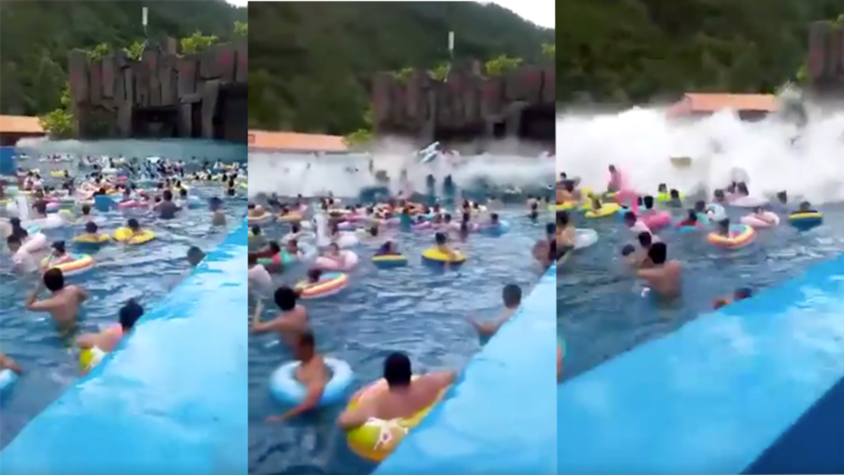 A favorite attraction at many water parks is the wave pool, a large body of water that releases small artificial waves that mimic the ocean. However, the fun times at the wave pool at one water park in China came to a quick end when it released an enormous tsunami on all the swimmers. It was all caught on camera and posted to Twitter with the caption, "Water world Tsunami injuring many in Yanbian, Manchuria. The operator got drunk and turned the wave magnitude to maximum level."